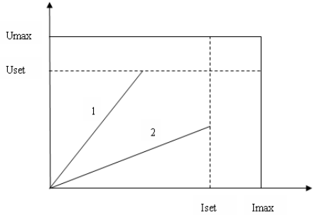 L'alimentation fonctionne soit en état de tension constante (CV) soit en état de courant constant (CC), les états de fonctionnement CV et CC sont automatiquement commutables, les conditions de commutation sont déterminées par les valeurs de tension et de courant et la valeur de résistance de charge du client.Pour plus de détails, veuillez vous référer à la figure suivante.
