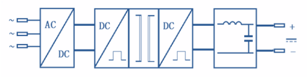 Technologie de commutation douce à déphasage à pont complet, l'efficacité globale est jusqu'à 88%.