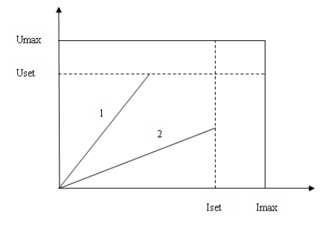 L'alimentation fonctionne soit en état de tension constante (CV) soit en état de courant constant (CC), les états de fonctionnement CV et CC sont automatiquement commutables, les conditions de commutation sont déterminées par les valeurs de tension et de courant et la valeur de résistance de charge du client.Pour plus de détails, veuillez vous référer à la figure suivante.