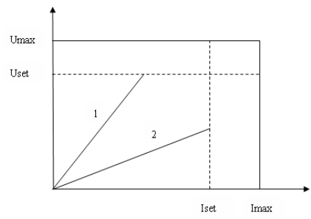 L'alimentation fonctionne soit en état de tension constante (CV) soit en état de courant constant (CC), les états de fonctionnement CV et CC sont automatiquement commutables, les conditions de commutation sont déterminées par les valeurs de tension et de courant et la valeur de résistance de charge du client.Pour plus de détails, veuillez vous référer à la figure suivante.