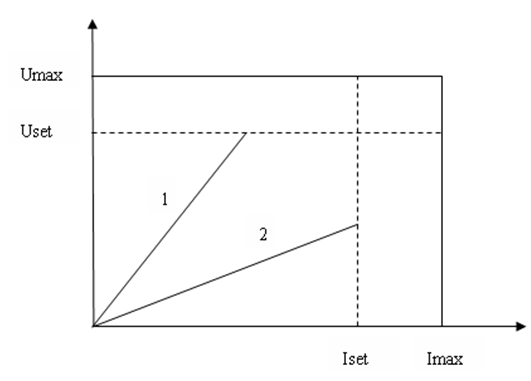 L'alimentation fonctionne soit en état de tension constante (CV) soit en état de courant constant (CC), les états de fonctionnement CV et CC sont automatiquement commutables, les conditions de commutation sont déterminées par les valeurs de tension et de courant et la valeur de résistance de charge du client.Pour plus de détails, veuillez vous référer à la figure suivante.