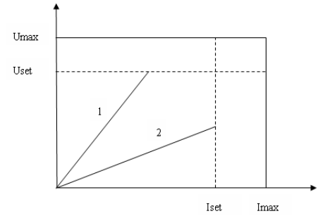 L'alimentation fonctionne soit en état de tension constante (CV) soit en état de courant constant (CC), les états de fonctionnement CV et CC sont automatiquement commutables, les conditions de commutation sont déterminées par les valeurs de tension et de courant et la valeur de résistance de charge du client.Pour plus de détails, veuillez vous référer à la figure suivante.