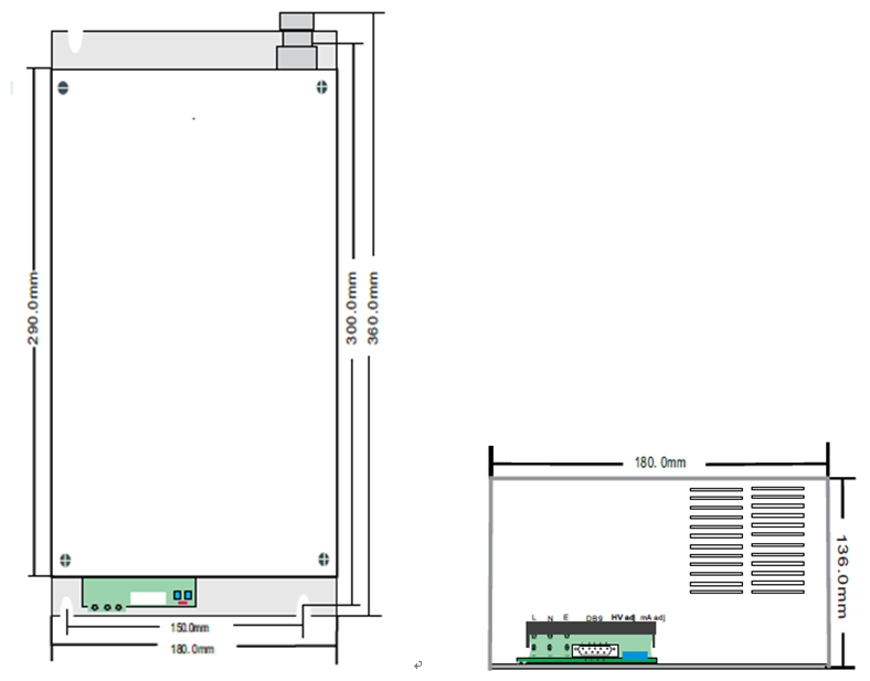 Le module de puissance HT est également équipé d'une interface DB9 pour faciliter le contrôle du bus des équipements d'installation embarqués.Les clients peuvent appliquer des signaux 0-10 V et des signaux de contact sec à l'interface selon notre définition d'interface pour obtenir des fonctions complètes de contrôle et de surveillance sur l'alimentation, comme le démarrage/arrêt haute tension, le réglage de la sortie et la lecture.