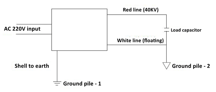 Description du produit: Le boulon de mise à la terre du produit sur le panneau arrière se connecte à la pile de mise à la terre 1, la borne noire sur le panneau arrière se connecte à la ligne blanche flottante et à l'extrémité négative de la capacité, c'est-à-dire la pile 2 dans l'image ci-dessus.